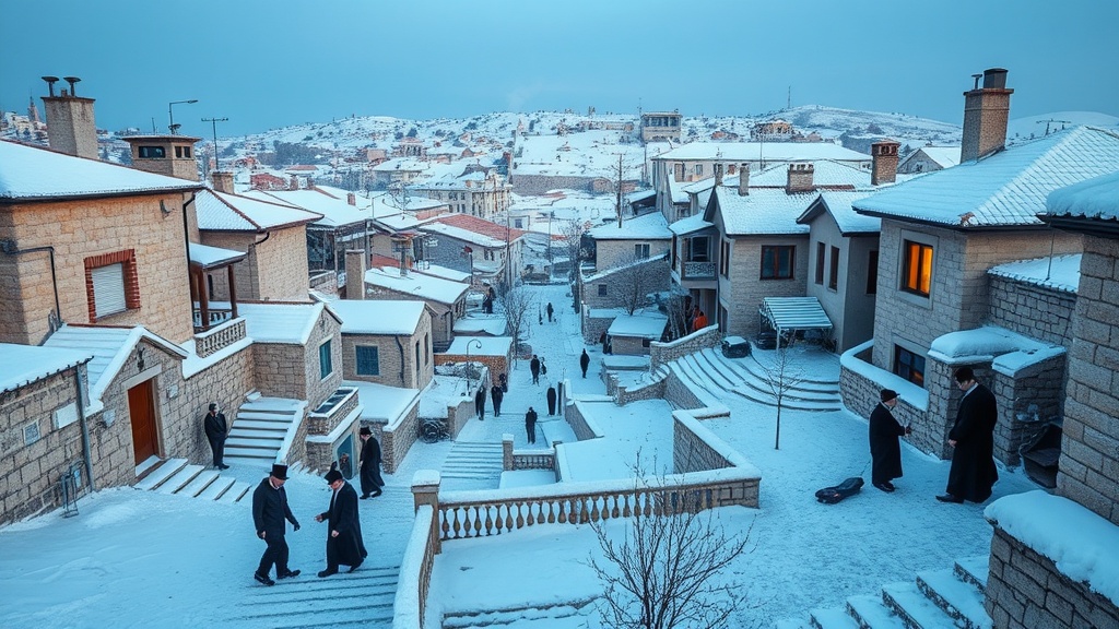 - בחורף – לעתים יורד שלג, והנוף הלבן על רקע בתי האבן יוצר מראה קסום